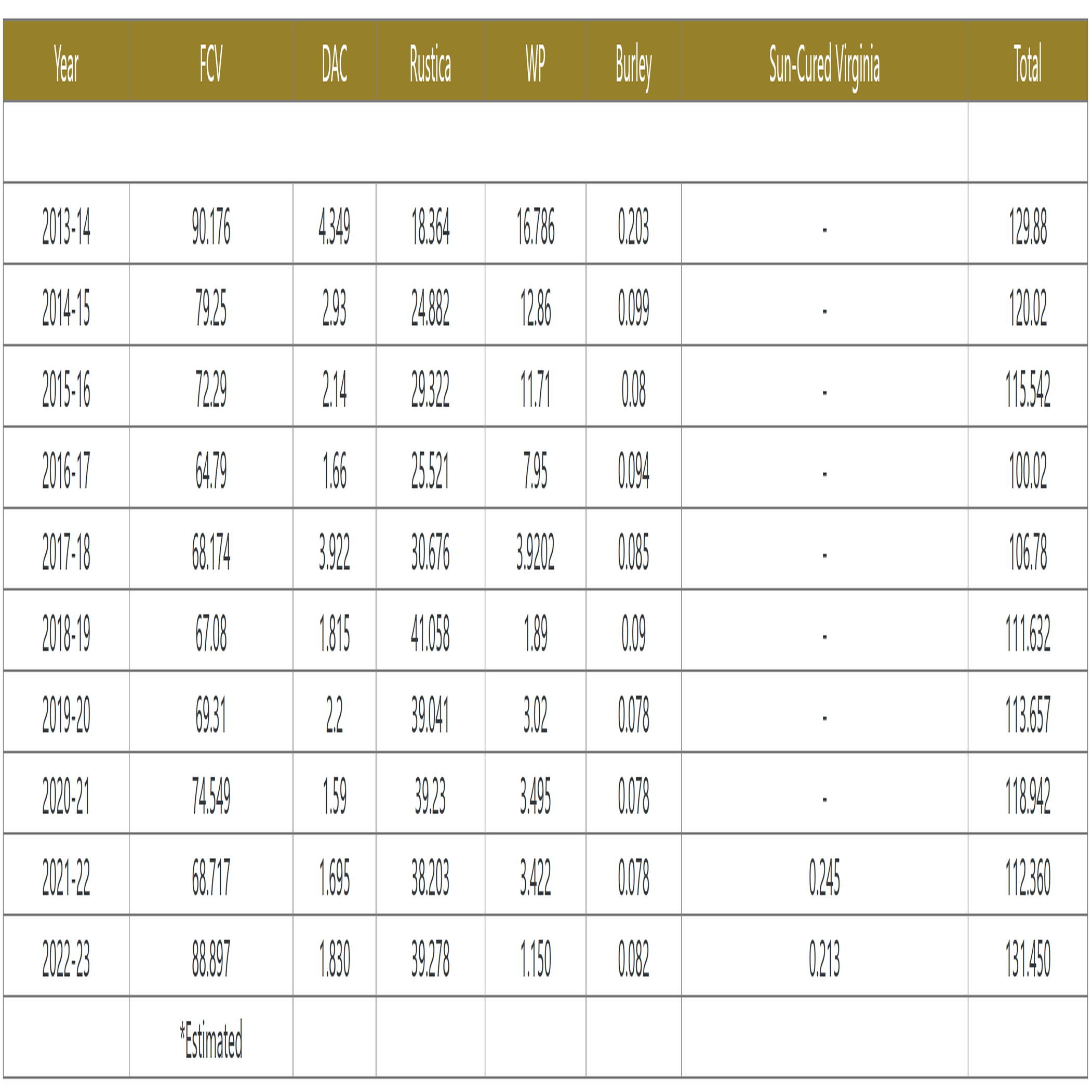 FCV, Flue cured virginia