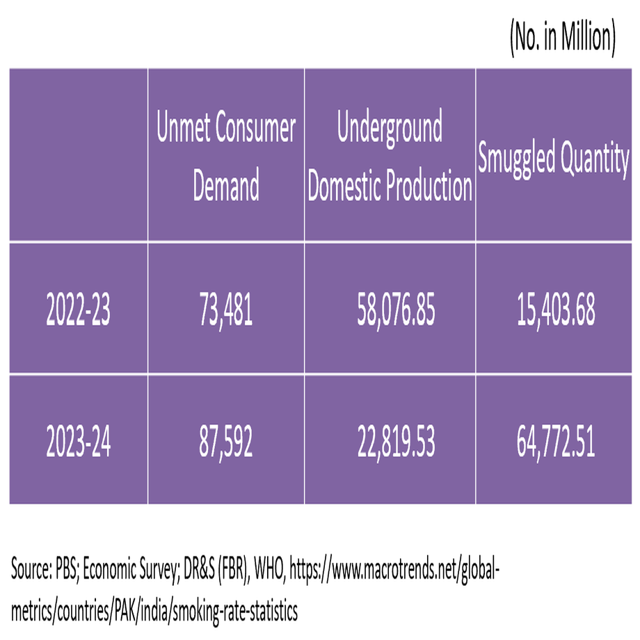 Figure 4. Estimates of Underground Domestic Production and Smuggled Quantity of Cigarettes in Pakistan.