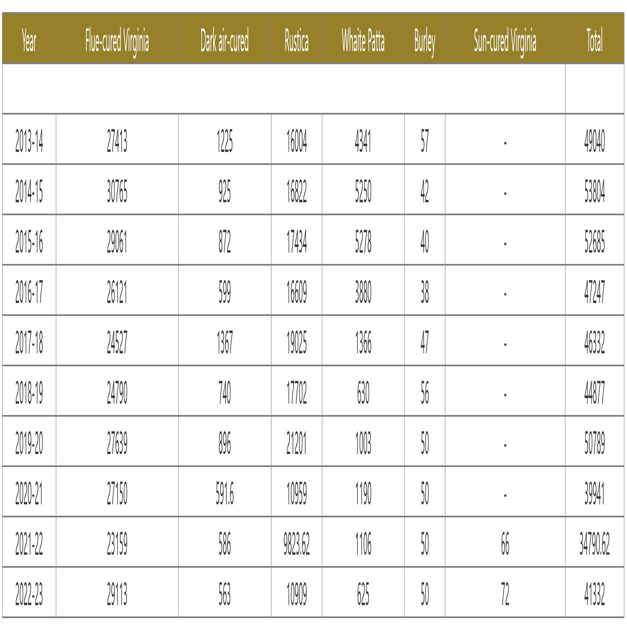 Figure 1. Area Under Differnt Type of Tobacco in Pakistan (HECTARES). Source: Pakistan Tobacco Board.